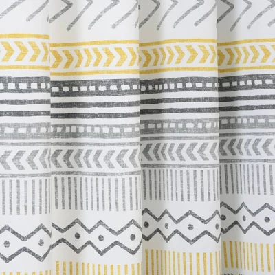 Hang the Hygge Geo Room Darkening Window Curtain Panel Set by simply sliding the curtain rod through the metal grommets.