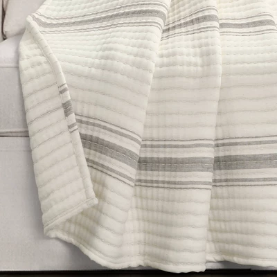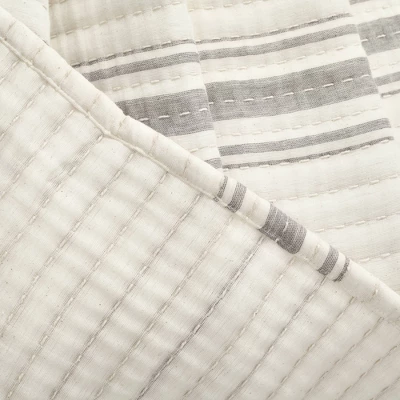 50″x60″ Farmhouse Striped Kantha Pick Stitched Yarn Dyed Cotton Woven Throw Blanket – Lush Décor