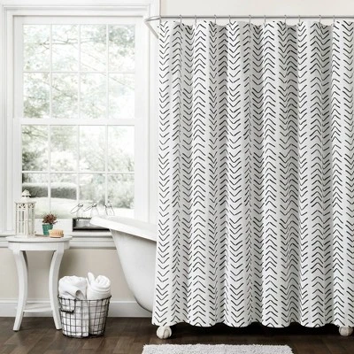 Make your bathroom feel like a luxury spa with this stylish shower curtain. With its simple and modern design, this shower curtain is perfect for adding a calming hygge touch to your bathroom decor. The white and contrasting color scheme is also super versatile and can easily be styled into your space. The cotton blend is soft with a luxurious linen look. This shower curtain measures 72 inches along each side and should fit most standard bathtubs. Please refer to label for full care instructions. Coordinates with our Hygge Modern Arrow Linen Like Window Curtain Panels.