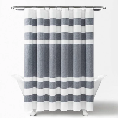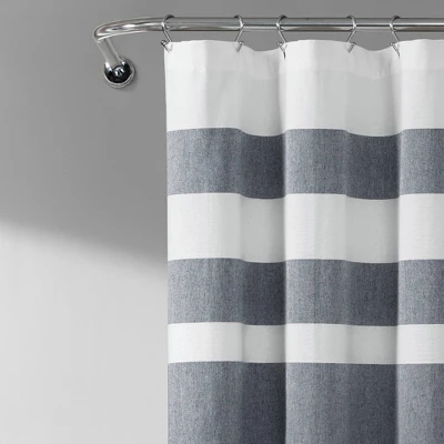 Update your bathroom with coastal style by adding Cape Cod Stripe Yarn Dyed Cotton Shower Curtain from Lush Decor. Horizontal cabana stripes in varying widths come together to create a subtle yet stylish beach house look. It’s ideal for a teenager’s, guest or master bathroom. Measuring 72 inches on each side, the shower curtain will fit nearly any bathtub. It can be hung easily with any standard shower curtain hooks or rings. This shower curtain is 100% Cotton and safe to machine wash. Check care label for full instructions. Part of the Cape Cod Stripe Collection.