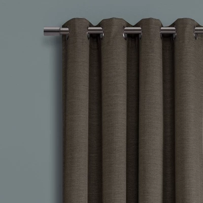 The Faux Linen Absolute Blackout Window Curtain Panel is sold by the single panel. Each panel measures 52 inches wide and is available in your choice of 84 or 95 inches long. With multiple colors to choose from, you are sure to find the perfect match for your space. Metal grommets make installing these curtains a breeze. They’ll easily slide right onto your curtain rod. The metal grommets have a 1.6″ diameter opening. When it comes to caring for these curtains, you will be happy to know that they are safe to machine wash and hang to dry. Please follow all instructions on the label before washing. Part of the Absolute Blackout Collection.