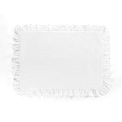 Add a little fashion flourish to your sweet nursery with this super-soft bedding set. The solid, textured baby quilt is edged with a delicate ruffle that’s versatile, timeless, and coordinates perfectly with the ultra-soft fitted sheet and a tailored crib skirt that features split corners for easy attachment around the crib. Perfect for classic, transitional, cottage, or farmhouse-themed nurseries or toddler’s rooms, the design of this solid 3-piece set is flexible enough to suit any décor style. Easy-care fabric makes the upkeep of this bedding set a breeze. Please refer to the label for full care instructions. This bedding set is STANDARD 100 by OEKO-TEX® certified.