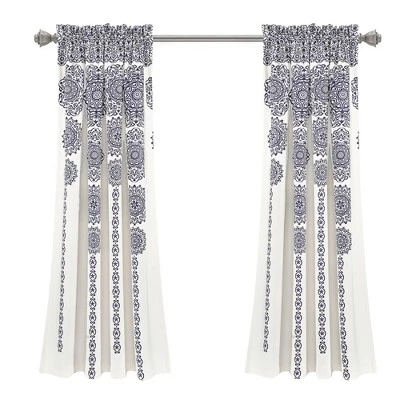 Update your home with this Stripe Medallion Room Darkening Window Curtain Set! In this delicately engineered pattern, a drip effect is used with a beautiful cascade of exquisite medallion motifs. It is a stunning artistic piece that will instantly enhance any room in your home. The Stripe Medallion Room Darkening Window Curtain Set features a modern design, which is perfect for a master bedroom, guest bedroom, living room, den or dining room. Each panel is 52 inches wide with a two-inch header and this set comes in lengths of 84 inches or 95 inches (some colors may not be available in all sizes). Not only are the panels gorgeous, but they also provide room darkening capabilities to filter sunlight and heat, making them a stylish and energy efficient option for your home. Having a three-inch rod pocket gives you two options for hanging this Stripe Medallion Room Darkening Window Curtain Set. You can either slide the panel right onto the curtain rod or hang the panels by clips from the curtain rod. For your convenience, these window panels are machine washable and can be tumble dried. For wrinkles or fold lines, a handheld steamer is recommended but light iron is also safe. Part of the Stripe Medallion Collection.